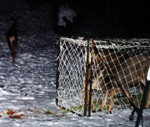 The research group are putting camera collars on the deer to look at short term behavioural changes in response to recolonising wolves. They are also using GPS collars to collect long-term movement data. The bulk of the field work will involve catching deer in traps like those shown below: